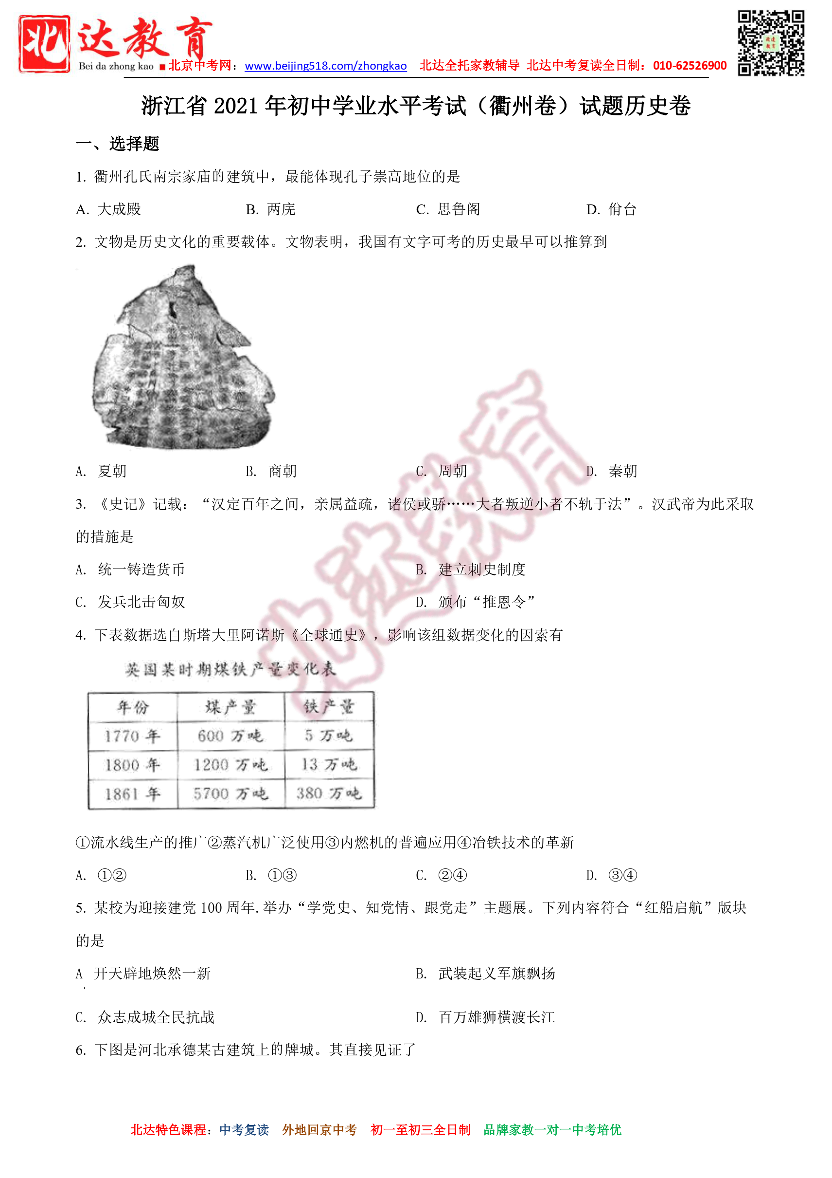 2021年浙江中考历史试题及答案汇总。admw360教研组收集整理,分享给大家。