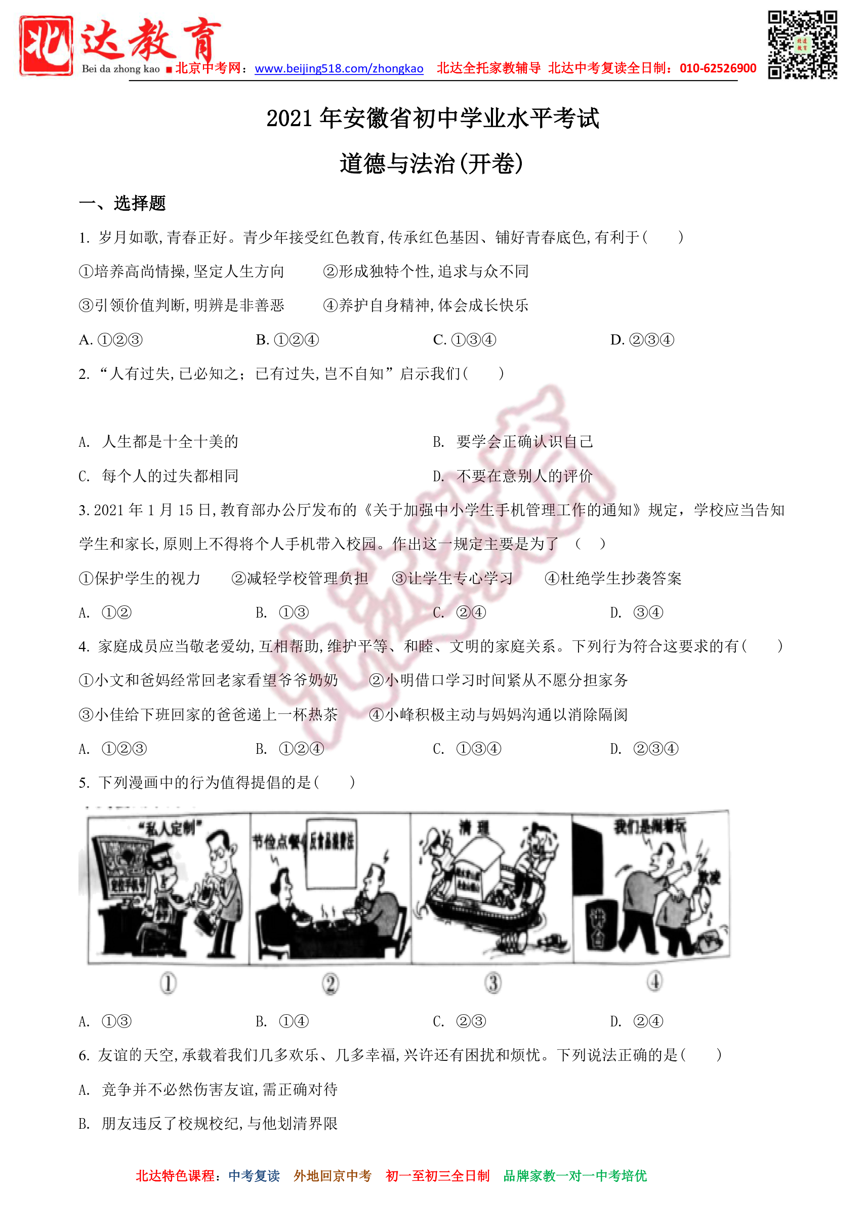 2021年安徽中考政治试题及答案汇总。admw360教研组收集整理,分享给大家。