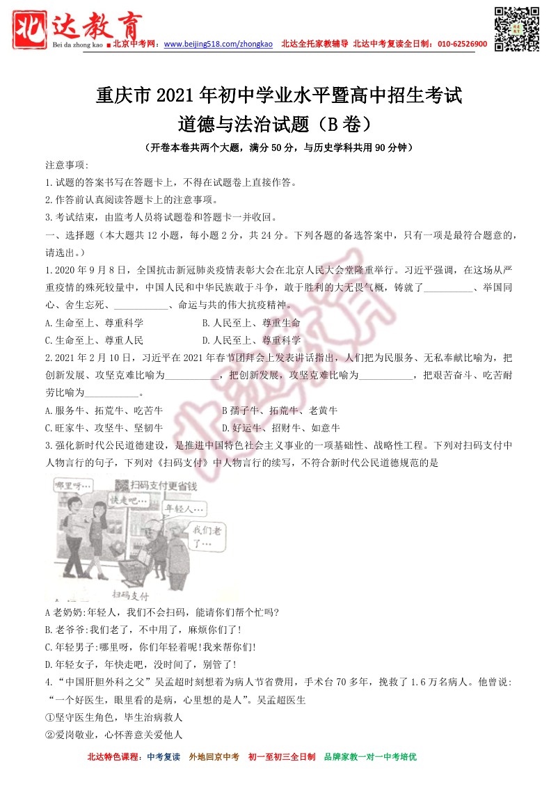 2021年重庆中考政治试题及答案汇总。admw360教研组收集整理,分享给大家。