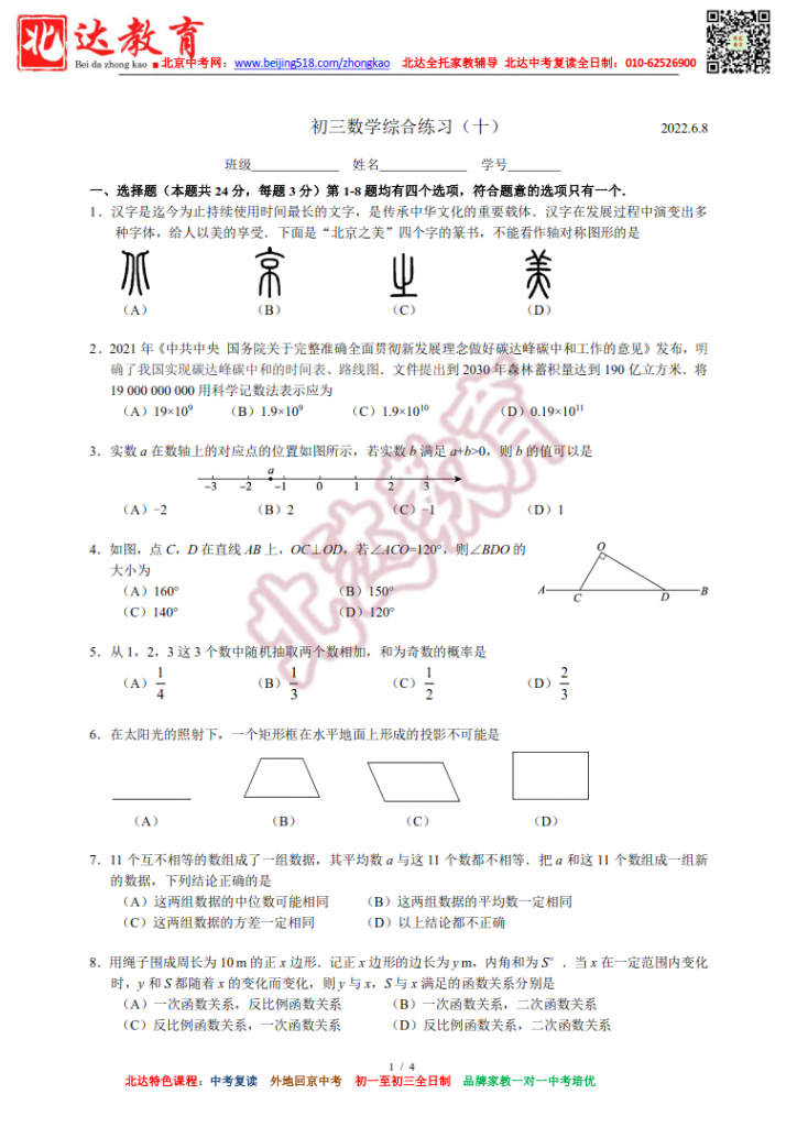 北京西城外国语学校2022初三下数学综合练习10(高清版无答案)。admw360中考复读学校教研组收集整理,分享给大家。