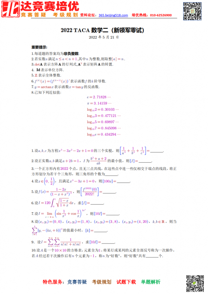 2022清华大学TACA测试 (新领军零试)数学二试题(高清版)。admw360中考复读学校教研组收集整理,分享给大家。