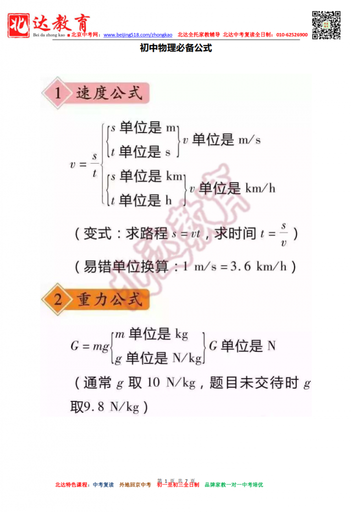 2022中考物理必备公式汇总(高清版)