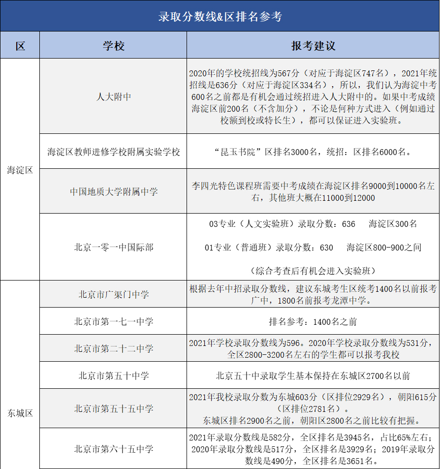 北京23所优质高中2022年分数线,区排名及报考建议汇总,哪个是你的目标校?admw360中考复读学校教研组收集整理,分享给大家。