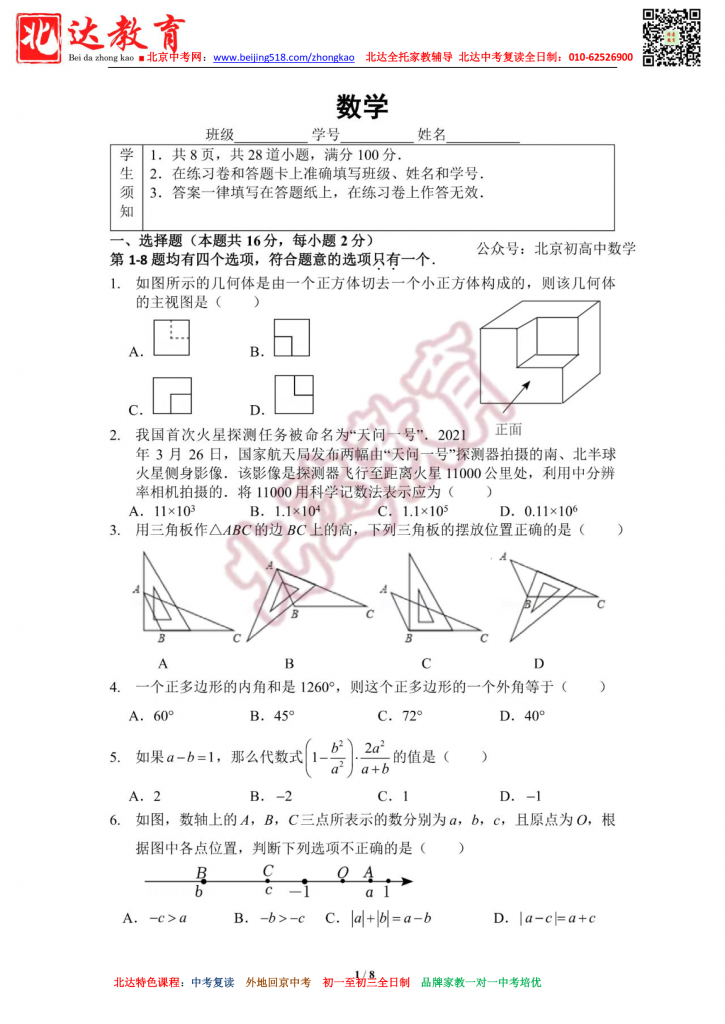 北京四中20220615中考数学2.5模拟试题及答案(高清版)。admw360中考复读学校教研组收集整理,分享给大家。