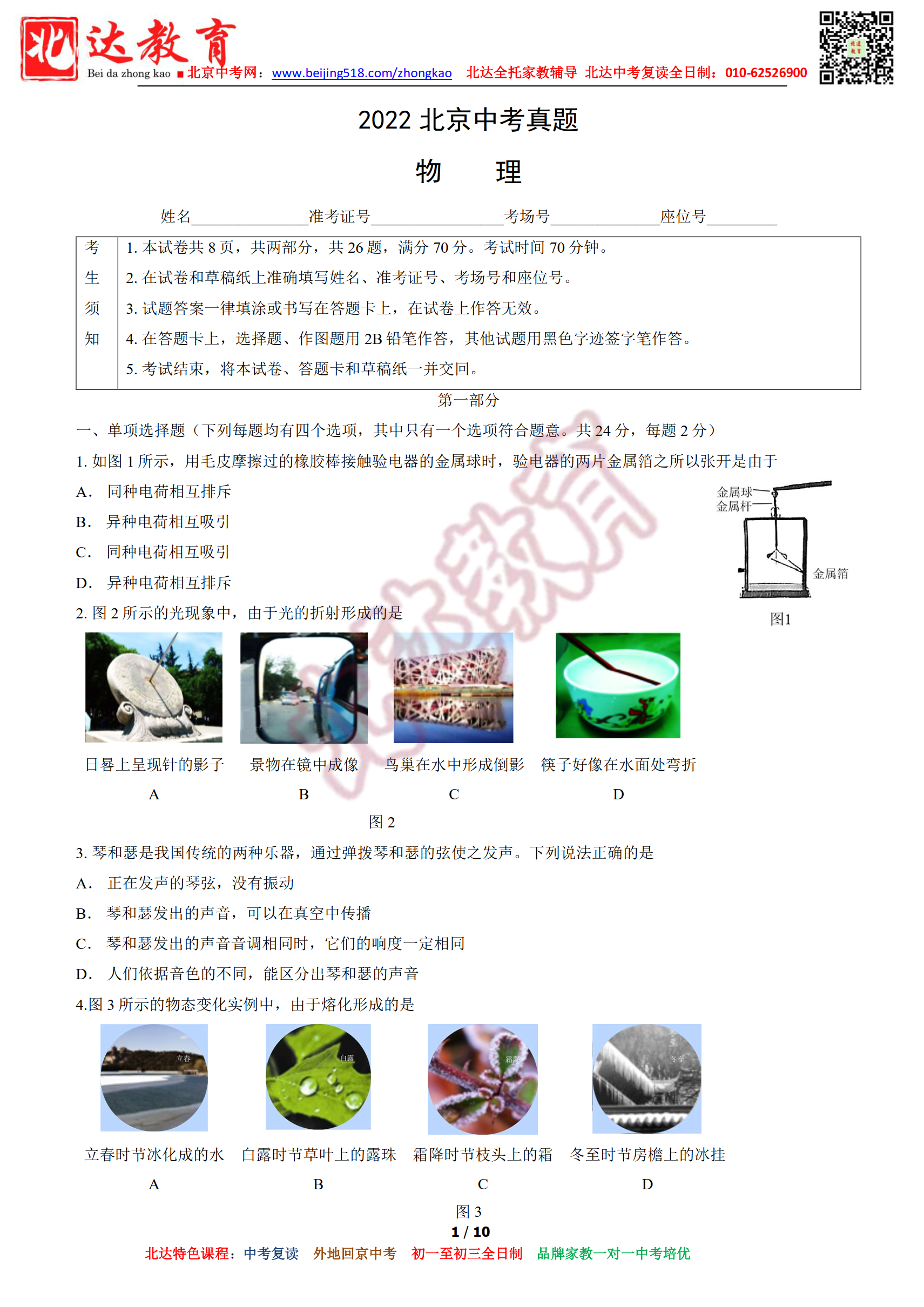 2022年北京中考物理试题及答案