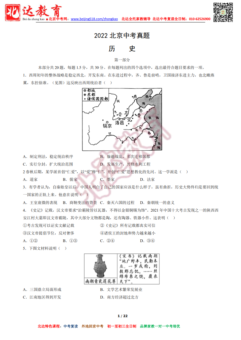 北京基教研专家:北京市2022年中考历史试卷权威解析!