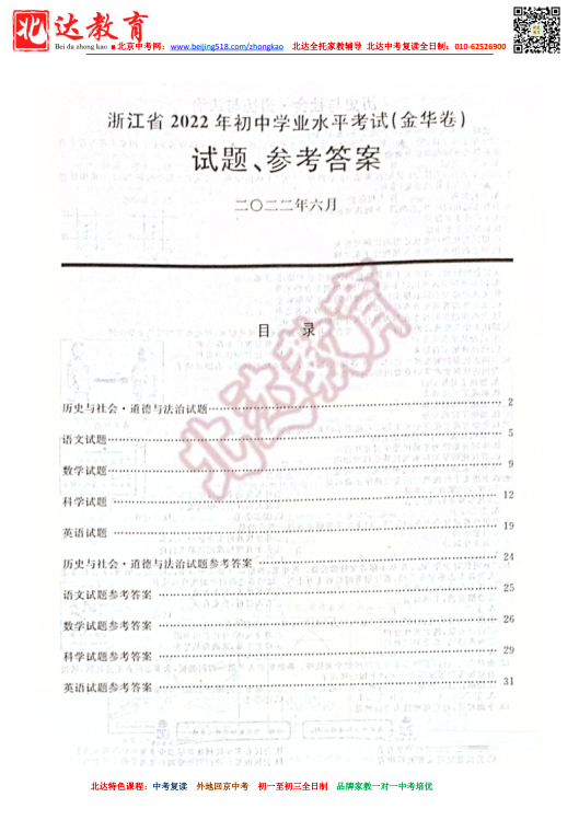 2022年浙江省金华市中考各科试题及参考答案汇总。admw360教研组收集整理,分享给大家。