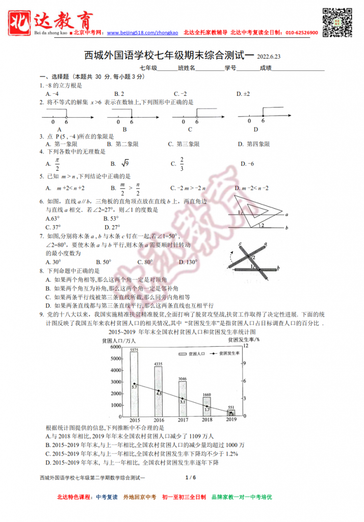 北京西城外国语20220623初一下期末数学综合测试一(高清版)。admw360中考复读学校教研组收集整理,分享给大家。