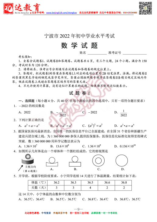 2022年浙江省宁波市中考试题及答案汇总。admw360教研组收集整理,分享给大家。