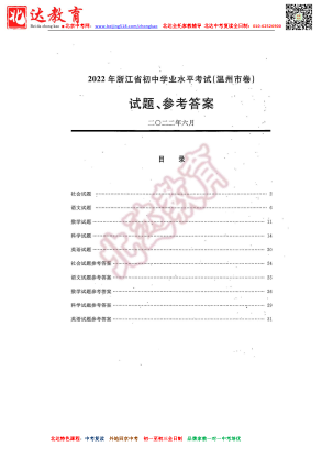 2022年浙江省温州市中考试题及答案汇总。admw360教研组收集整理,分享给大家。