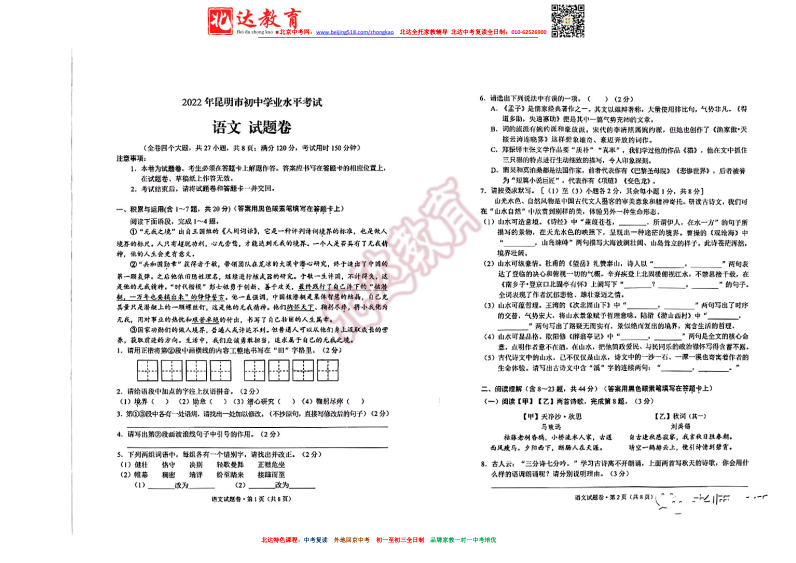 2022年云南省昆明市中考试题及答案汇总。admw360教研组收集整理,分享给大家。