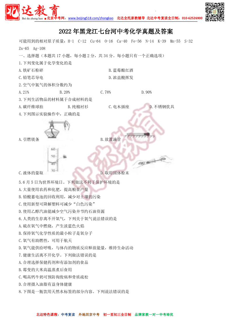 2022年黑龙江省七台河市中考试题及答案汇总。admw360教研组收集整理,分享给大家。