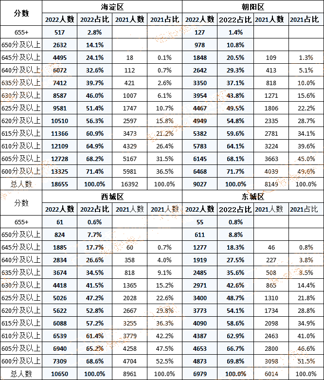 去年2021年北京教育考试院只公布了645以上分数段的人,北京18区县645分以上的人员共计268人。