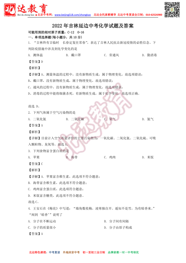 2021年北京市中考真题(逐题)深度解析