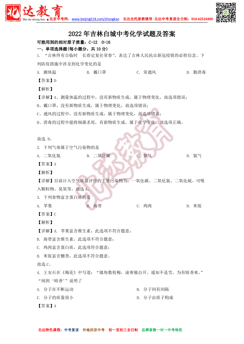 2022年吉林省白城市中考试题及答案汇总。admw360教研组收集整理,分享给大家。