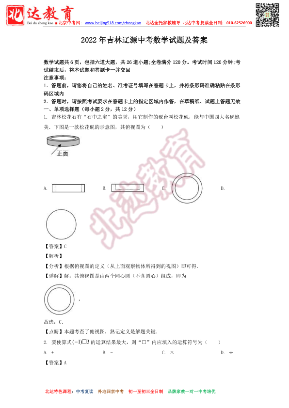 2022年吉林省辽源市中考试题及答案汇总。admw360教研组收集整理,分享给大家。