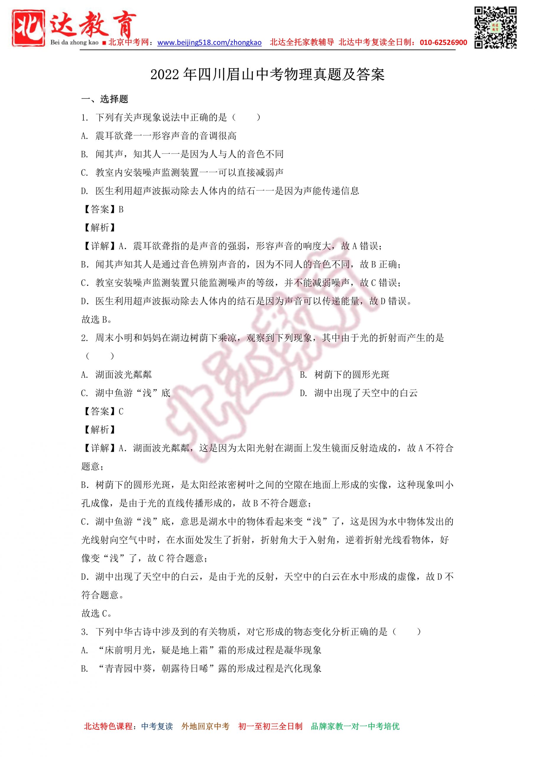 2022年四川眉山中考试题及答案汇总。admw360教研组收集整理,分享给大家。