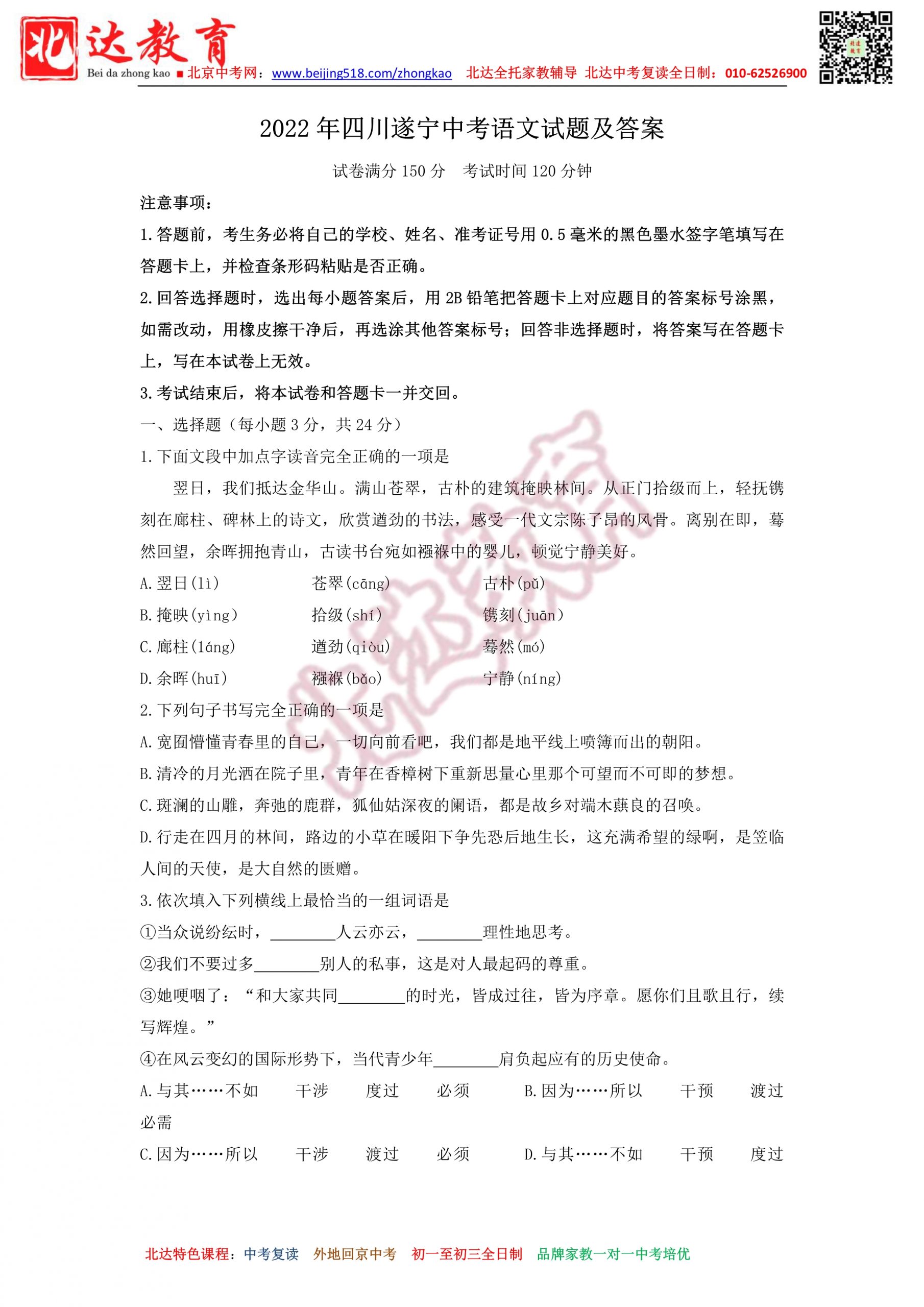 2022年四川遂宁中考试题及答案汇总。admw360教研组收集整理,分享给大家。