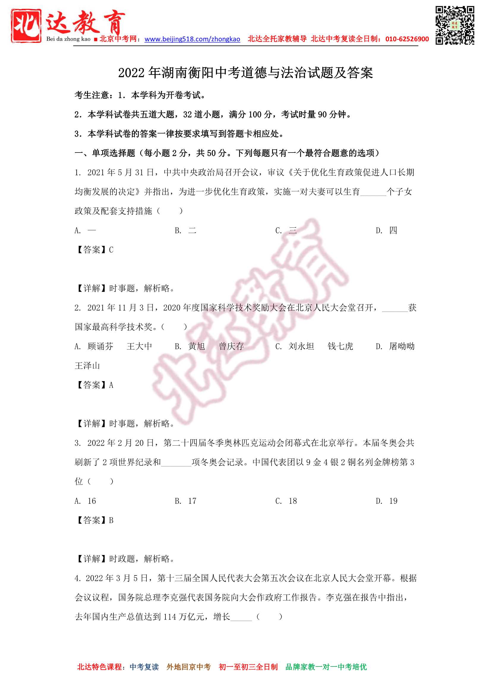 2021年北京市中考真题(逐题)深度解析
