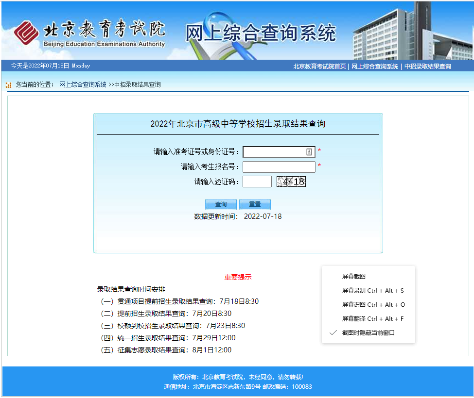 2022年提前招生录取结果哪天能查?根据北京考试院公布的时间表,7月20日开始就可以查询提前招生录取结果。