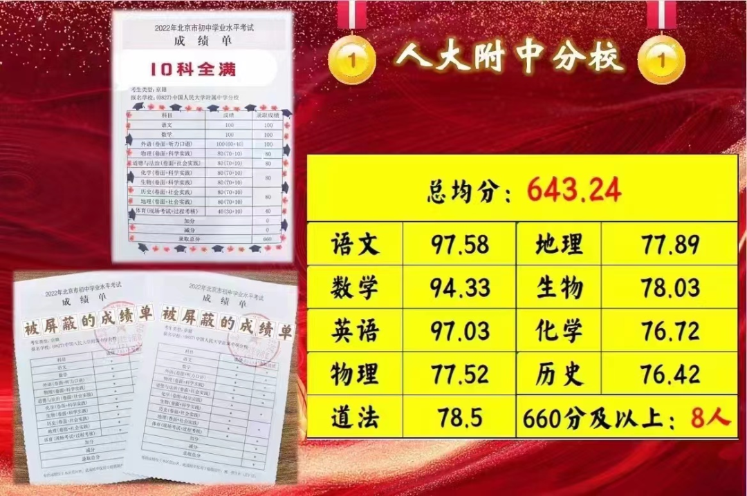 网传未经确认,人北实验学校今年最高分659!各科满分近200人次,20%上线六小强,超70%上线示范高中,优秀率98%。