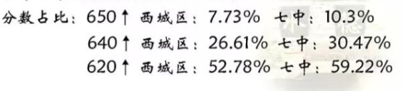 650分以上17人 640分以上66人 633分以上112人,630分以上125人,620分以上180人,600分以上272人。超过城区平均。