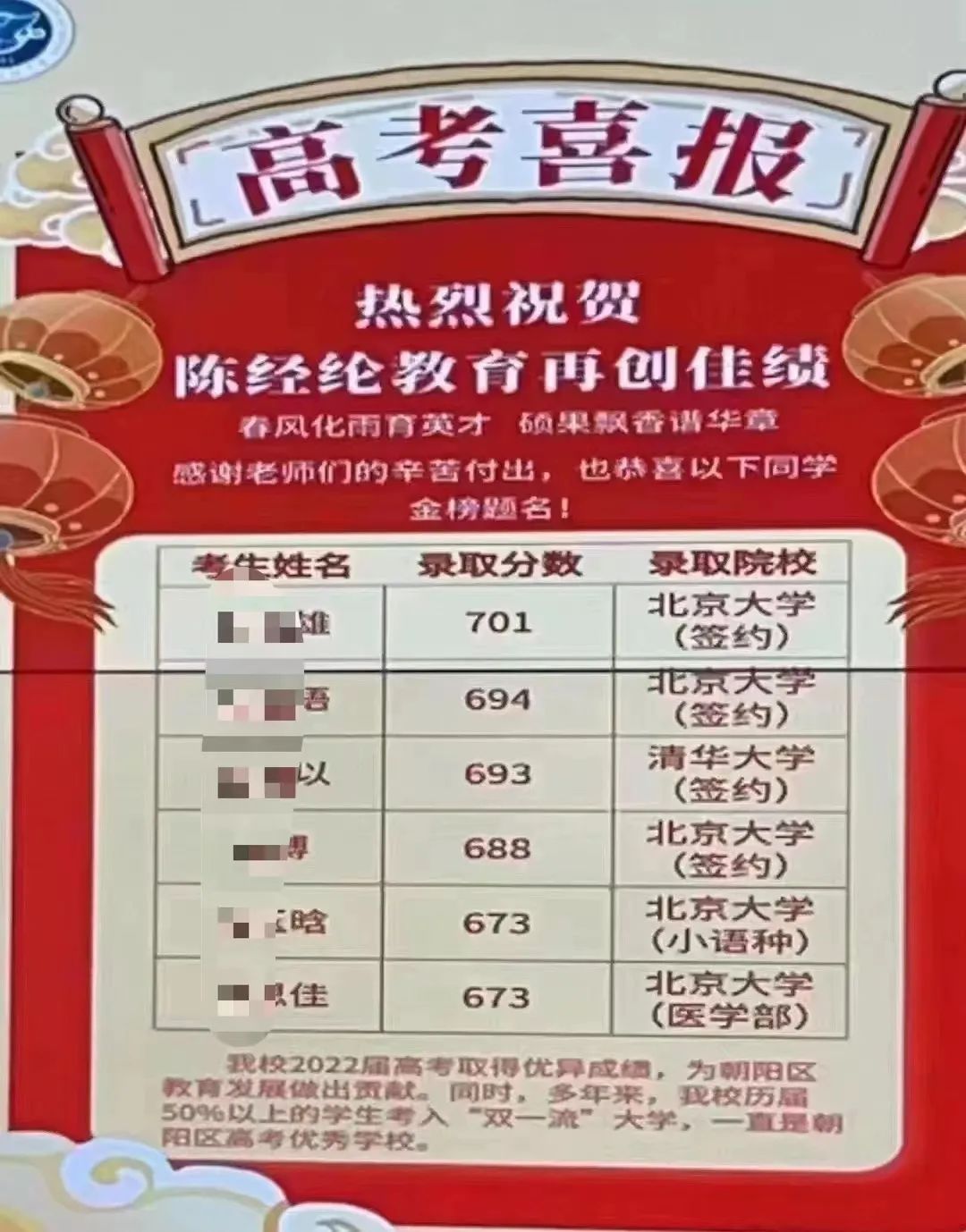 平均分朝阳首位,655分以上人数朝阳第一,全区第一名(并列多人),人朝分占3个