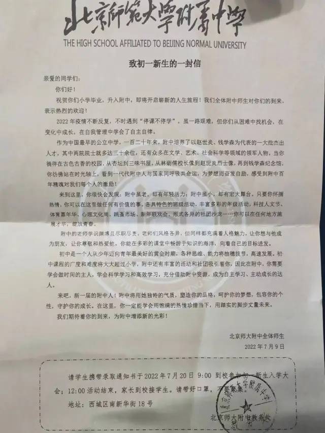 首页 中学资讯 北师大附中 新初一 分班信息!