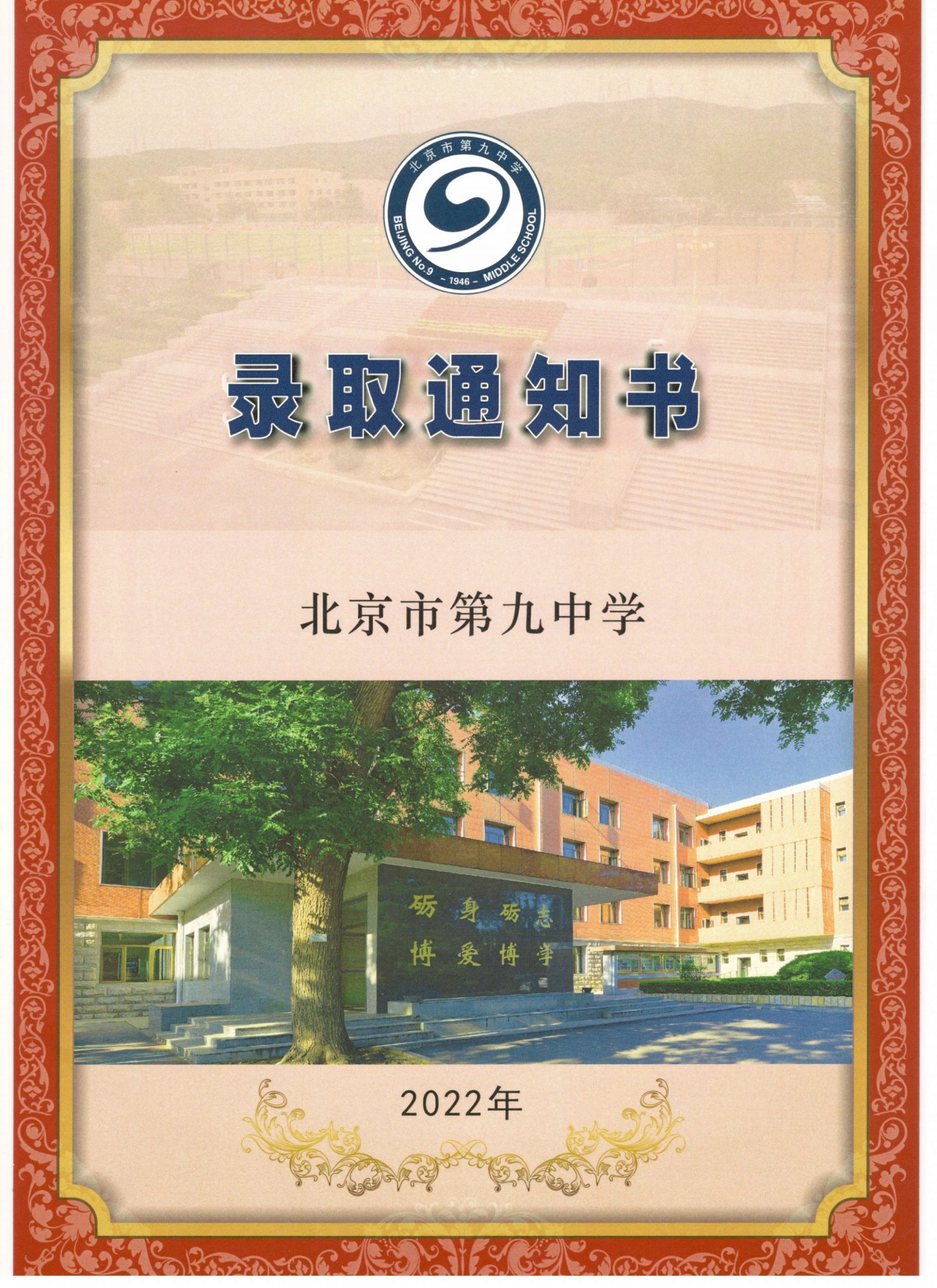 2022年北京九中录取通知书&新高一入学须知!北京admw360教研组整理分享相关信息,供大家参考。