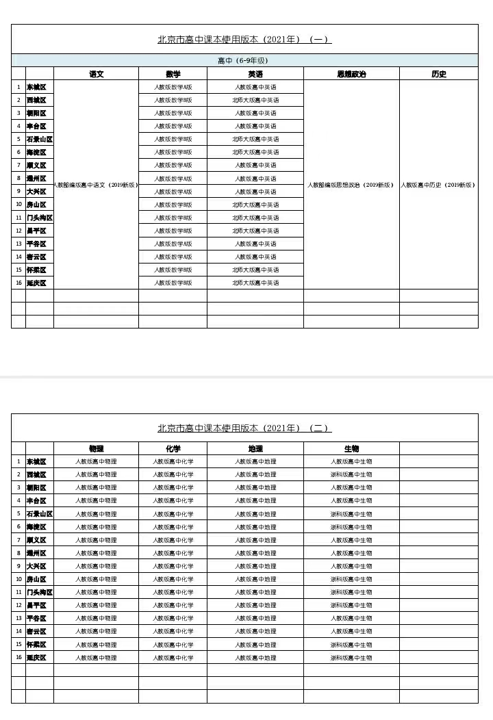 2022年新高一各区教材用的都是哪些版本?北京admw360教研组整理分享相关信息,供大家参考。