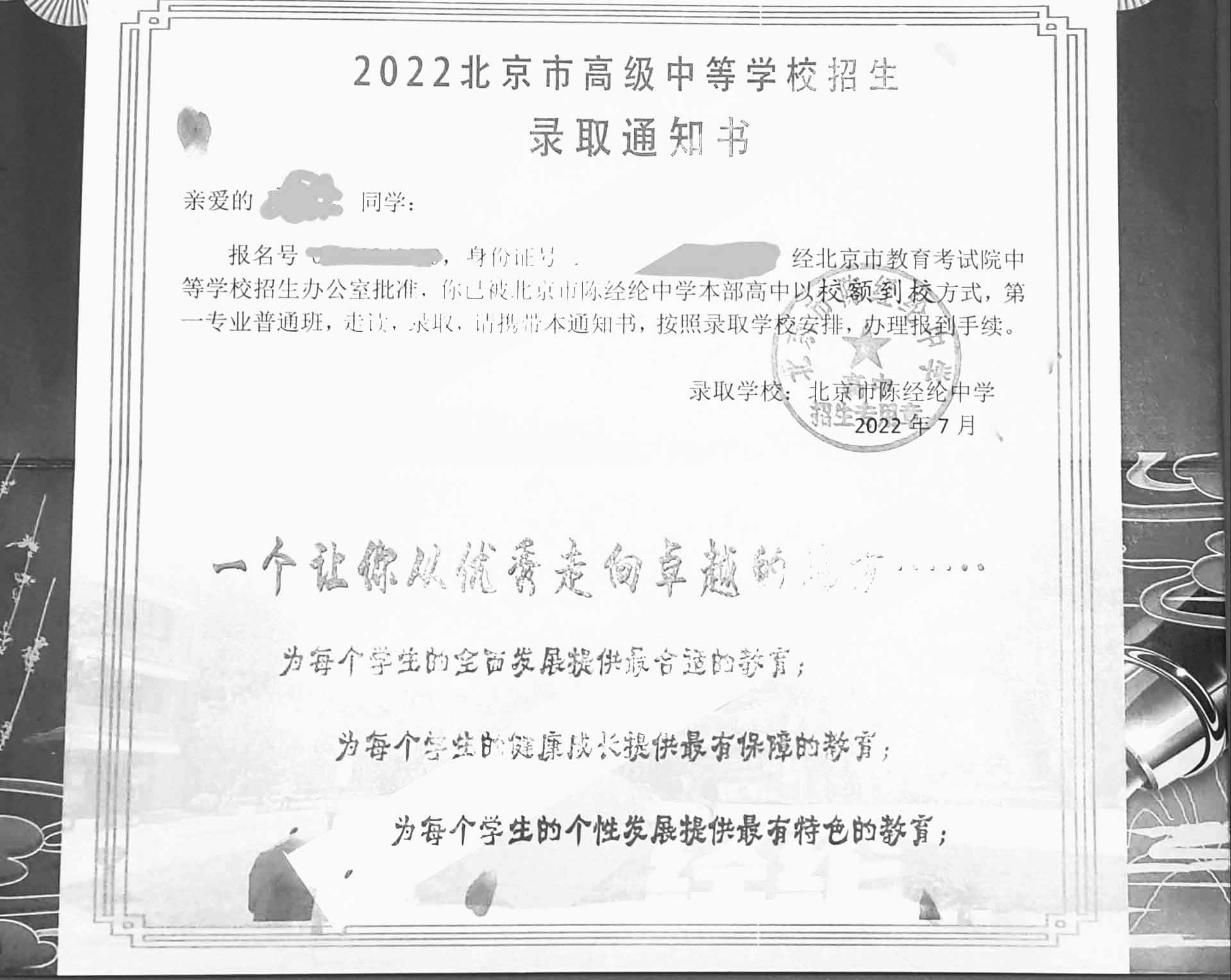 2022年陈经纶中学新高一入学安排,附录取通知书!北京admw360教研组整理分享相关信息,供大家参考。