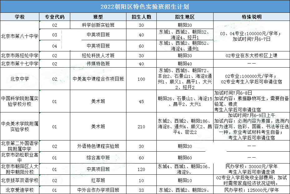 2022朝阳区哪些高中设有特色实验班?招生多少人?北京admw360教研组整理分享相关信息,供大家参考。