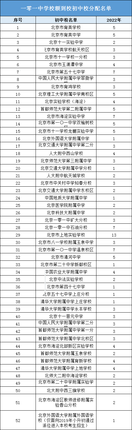 2022一零一中学校额到校名额都分配给了哪些初中校?北京admw360教研组整理分享相关信息,供大家参考。
