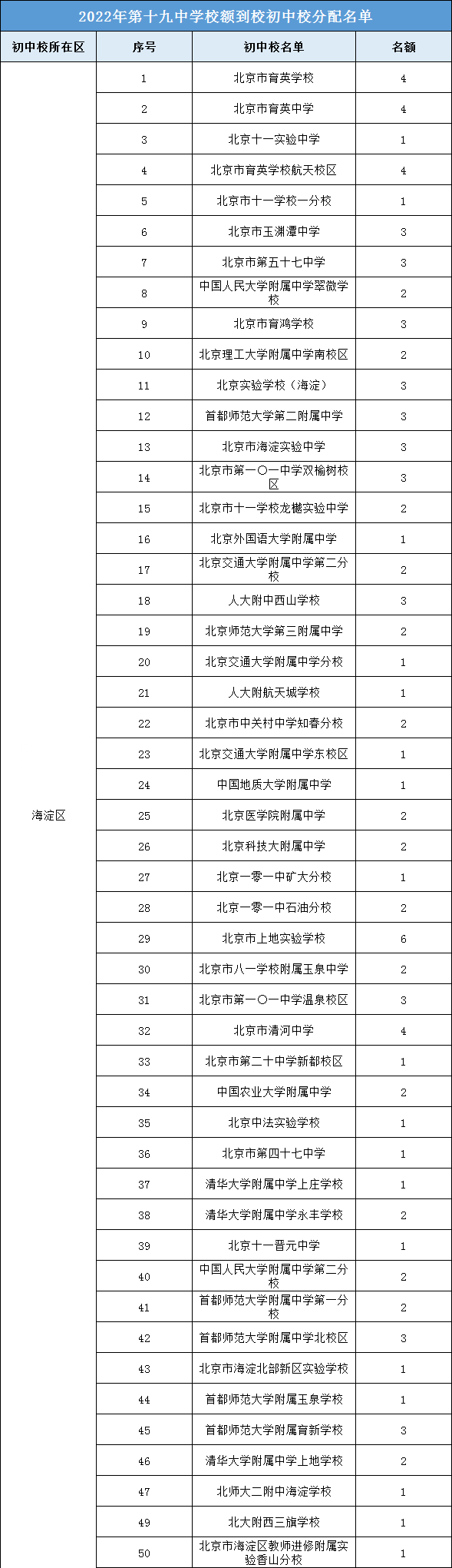 2022年北京十九中学校额到校名额都分配给了哪些初中校? 北京admw360教研组整理分享相关信息,供大家参考。