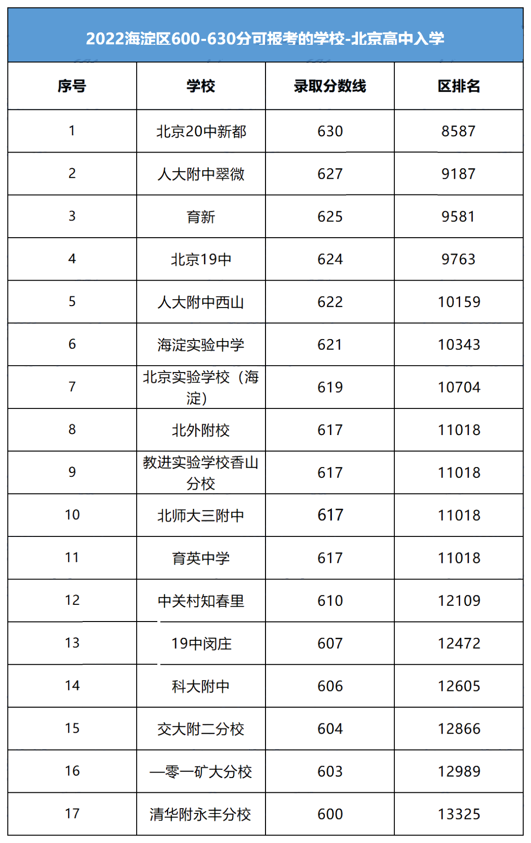 2022北京东西海朝中考成绩600-630分之间的学生都去了哪些学校? 北京admw360教研组整理分享相关信息,供大家参考。