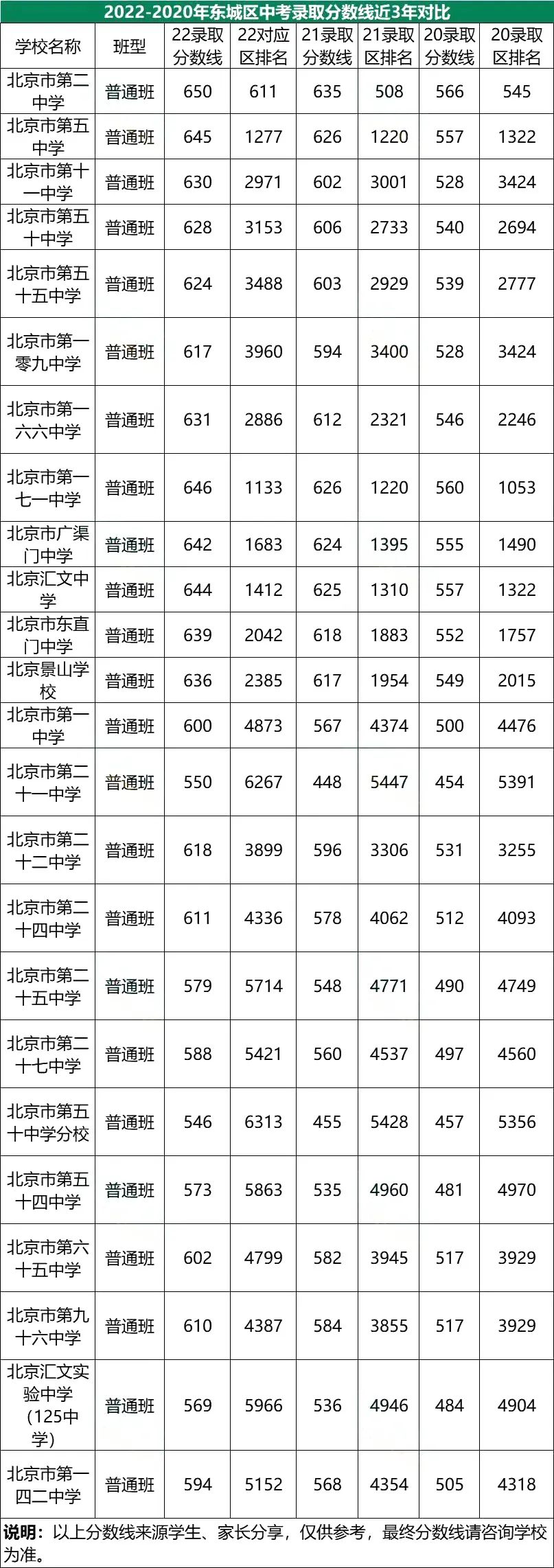 看完了以上的分享,想必大家也对近三年东城区中考录取分数线&区排名数据有什么变化的情况有了更详细的了解,从数据上来看,从2020年到2022年,东城区学校的中考录取分数呈现逐年上升的趋势,而今年学校之间的分数差距也在650分到546分之间不等,对于2023年考生来说,在报考学校的时候也可以参考这些数据结合自己的实际情况去填报志愿。