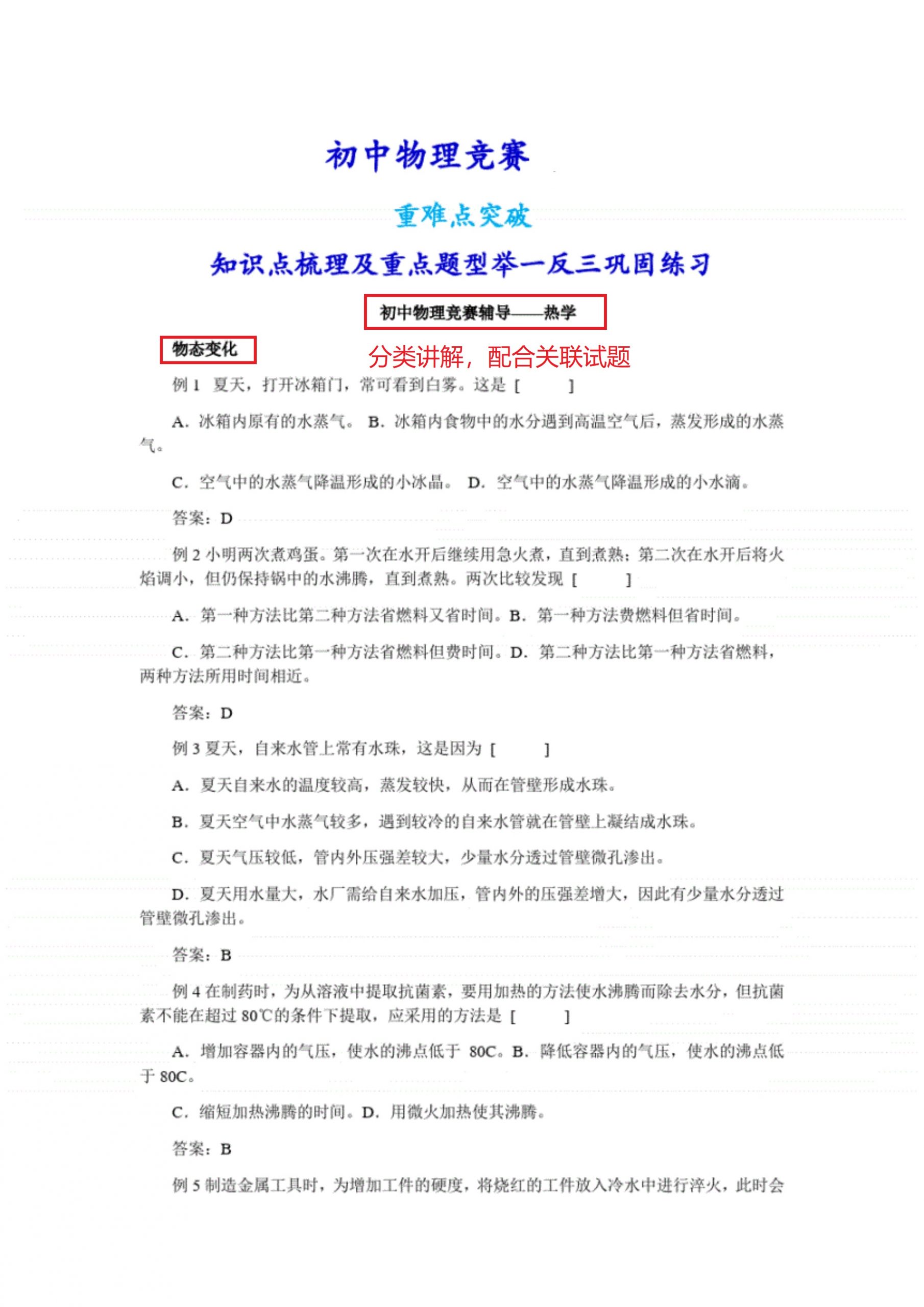 下载链接:初中物理竞赛讲义试题分类汇编