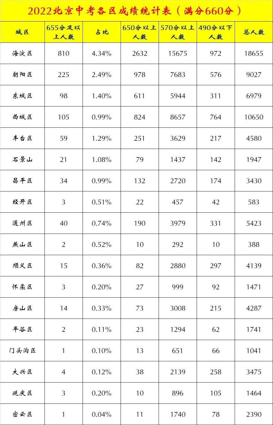 以海淀区为例:655分(满分660分)及以上的学生达到了810人,有学生考了660分的满分,却没有进入区前20(前20名成绩会被屏蔽)。不仅是在海淀,京城其他各区也都出现了相同的“盛况”