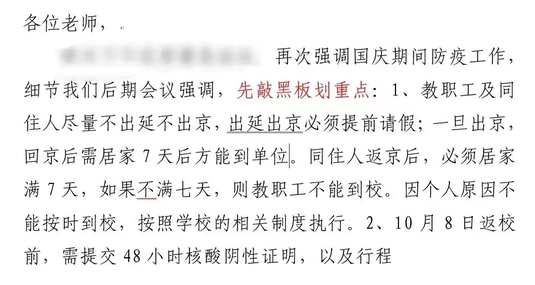 另有北京某校发布国庆出京通知,具体内容分享给大家