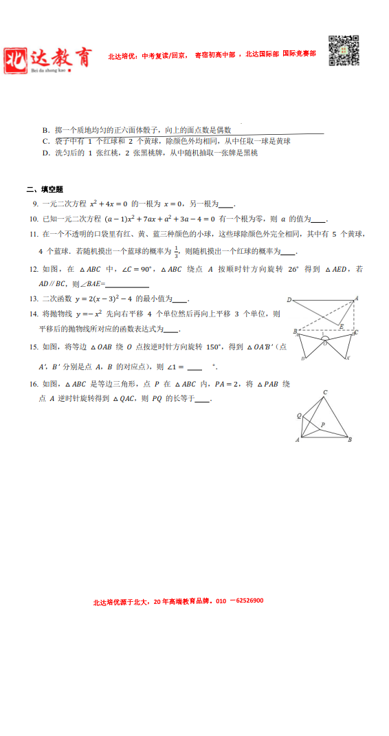 今天北京admw360中考网为大家整理的是北京2022-2023朝阳区陈经纶中学九年级上10月考数学试题含解析,下载练起来吧。