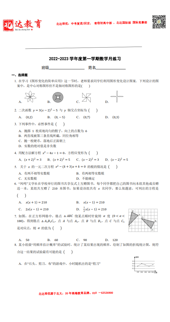 相关阅读:2022-2023学年北京各校初三(上)月考试题及答案汇总