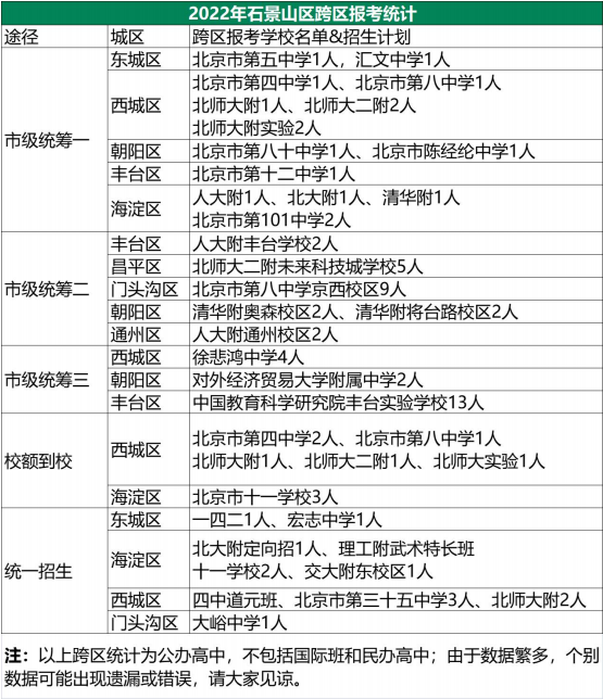 今天admw360中考网为大家整理的是北京石景山区2022跨区报考学校名单&招生计划统计,2023升学可参考!