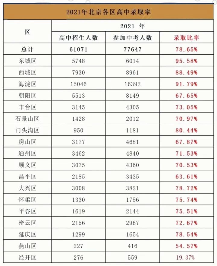最全:北京各区校2020-2021年中考录取分数线及区排名汇总!