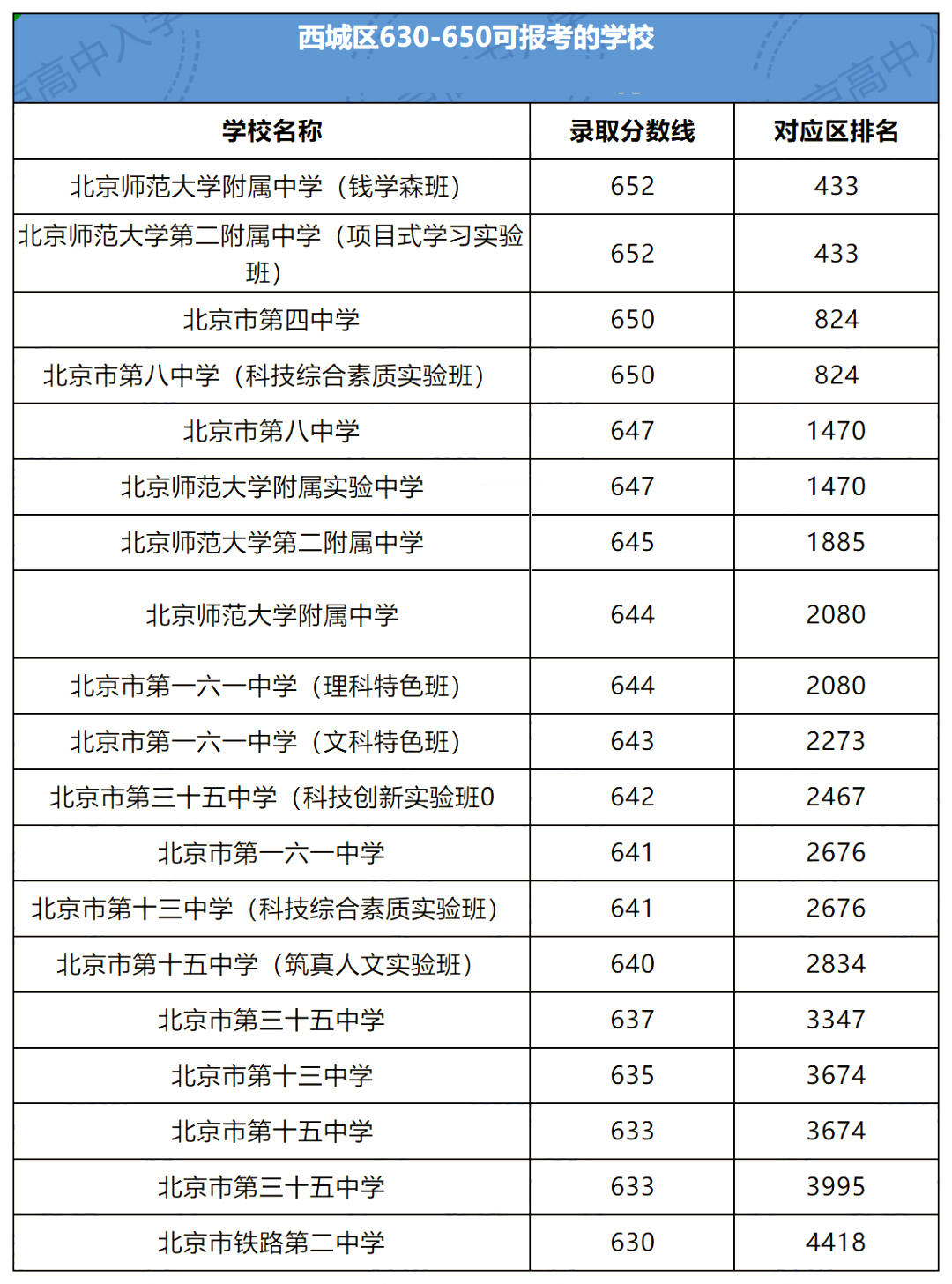 2022北京东西海朝四区630分以上的考生去向如何?今天admw360中考网特整理了2022北京西城区中考630-650的学生可以报考的学校!今年北京各大牛校录取分数线多少?2023考生可参考!