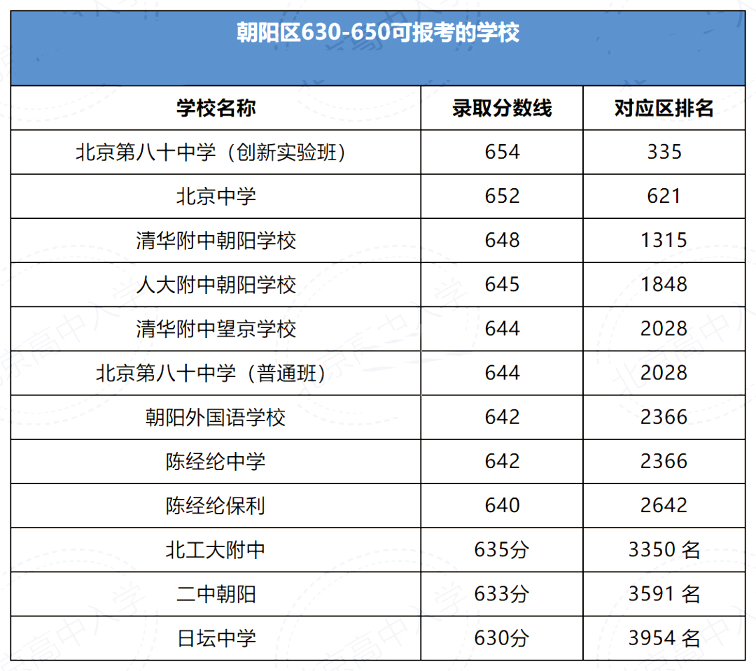 2022北京朝阳区区中考630-650的学生可以报考的学校!