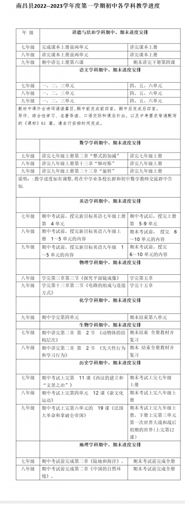 整理了关于2022-2023学年上学期江西南昌初中各学科教学进度,希望对同学们有所帮助,仅供参考。