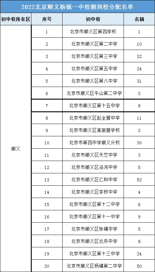 2022年杨镇一中有318个校额到校名额,分给了顺义20所学校。详细分配名额见上表↑↑