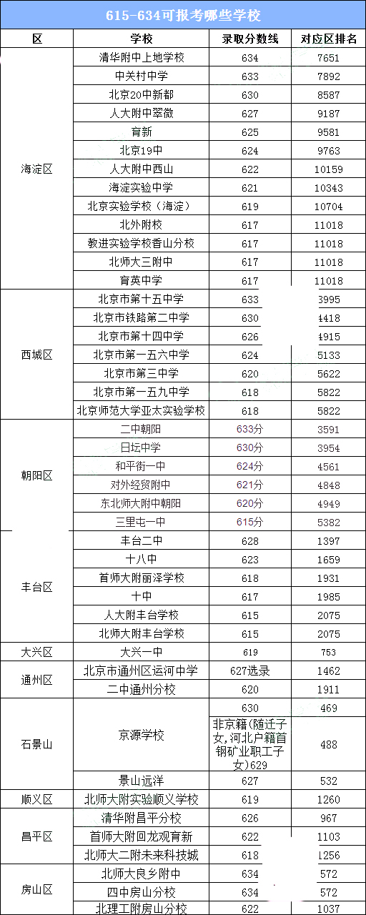 2022北京东西海朝四区610-630分以上的考生去向如何?今天admw360中考网特整理了北京中考成绩610-630分的考生可报考的学校,2023考生可参考!