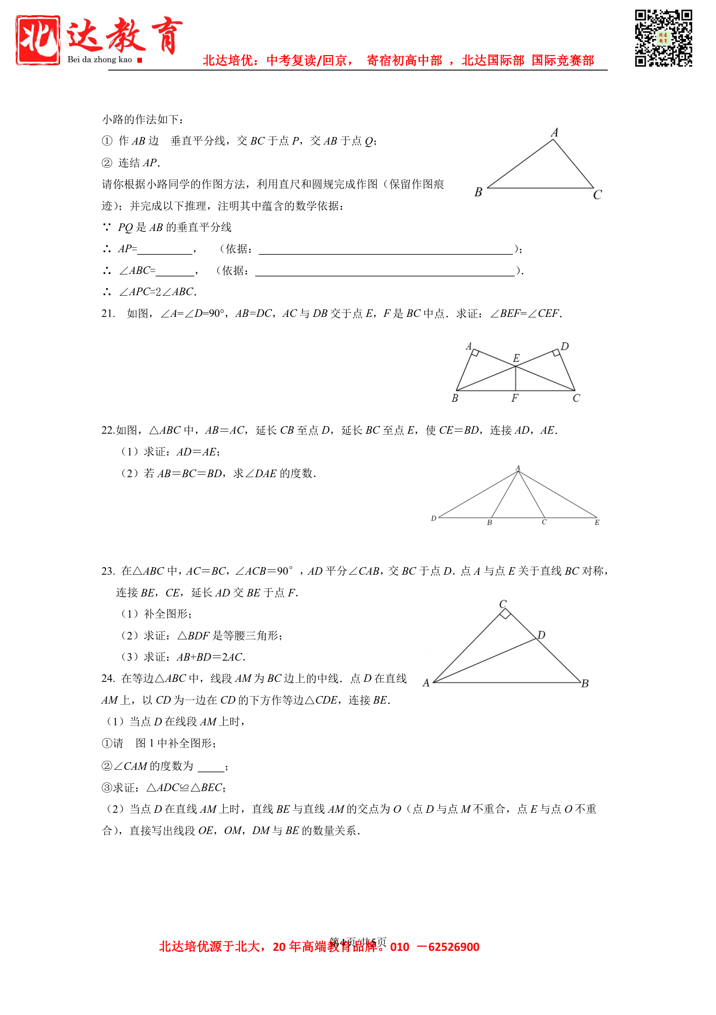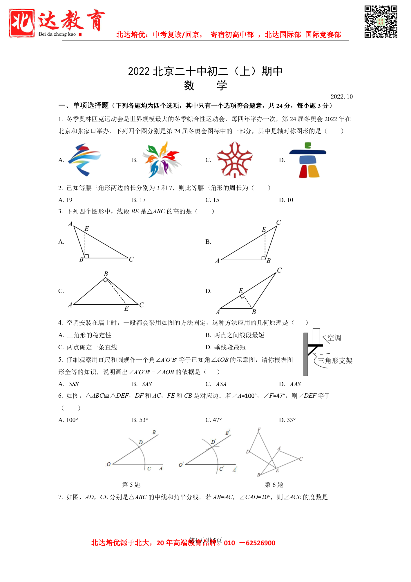 2022-2023学年北京二十中初二(上)期中数学考试已结束,admw360中考网第一时间为大家整理了试卷,分享给各位小伙伴。