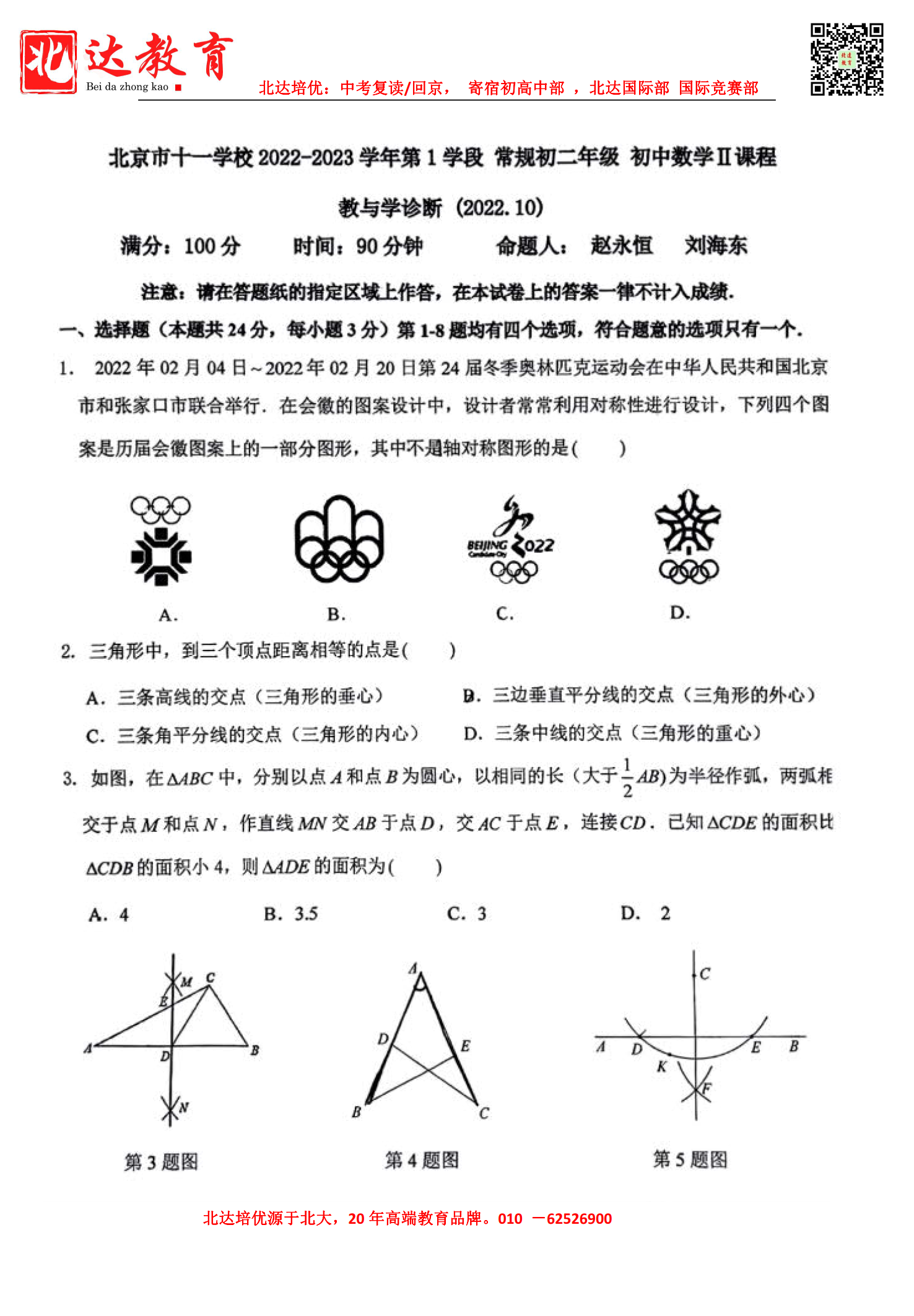 2022-2023学年北京二十中初二(上)期中数学考试已结束,admw360中考网第一时间为大家整理了试卷,分享给各位小伙伴。